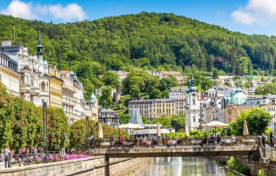 Die Bäderstadt Karlsbad empfängt Sie mit mildem Klima und zauberhafter Architektur. Kaiser Karl der IV. entdeckte die Wirkung der hiesigen Quellen, die nach ihm Goethe, Kaiserin Maria Theresia und viele andere zur Gesundung nutzten.